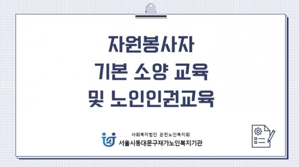 자원봉사자의 전문성 향상과 인권 감수성 제고를 위해 기본 소양교육 및 노인인권교육을 실시하였습니다.